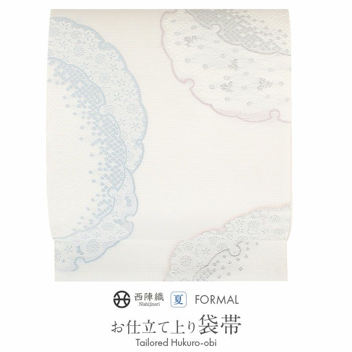 夏の結婚式の留袖や、訪問着などの礼装用にお使い頂ける、西陣織のお仕立て上がり夏袋帯です。