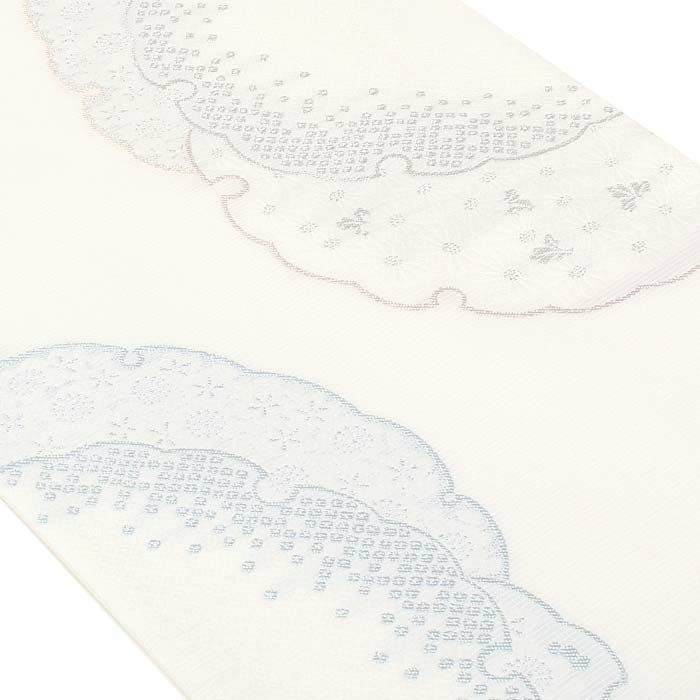 優しい色合いで上品な印象があり、お祝いの席にぴったりの袋帯です。