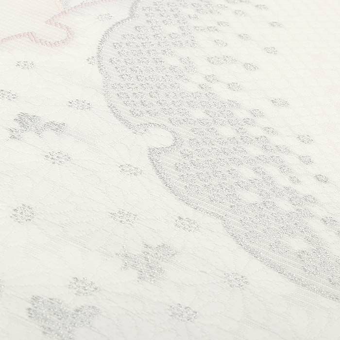 光の当たり方で、絹特有の柔らかな光沢や銀糸が反射し、高級感あふれる美しい帯がお楽しみいただけます。