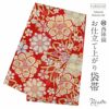 成人式や結婚式、振袖にお使いいただける、西陣織お仕立て上り袋帯です。 鮮やかな赤地に織り込まれた華紋とリボンは、華やかでありながら古風な雰囲気を持ち合わせ、どんな振袖にもお洒落なアクセントを加えます。 帯は伝統工芸の西陣織にて仕立てられており、染められた糸を複雑に織って模様を作るので、完成までに多数の工程があり、とても手間暇がかかる高級絹織物です。 こうして丁寧に織られた生地は、先染めしてから織っているので、一般的な染色法の後染めより丈夫でシワになりにくいのが特徴です。 綿密に織られた西陣織は糸数も多く、ぐっと締まって緩みにくいので、着姿もしゃんと背筋が伸びます。 絹の帯には、金糸を使用しており、魅入ってしまうほどの美しい輝きが魅力的。 光の当たり方で、絹特有の柔らかな光沢や金銀糸が反射し、高級感あふれる美しい帯がお楽しみいただけます。 絹の質感と光沢、大胆で鮮麗な柄が、大切なお祝いの席を華やかに演出してくれるでしょう。 結婚式やパーティーでの振袖はもちろん、一度きりの成人式に相応しい豪華な逸品です。