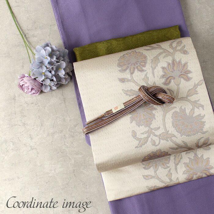 唐花 春、秋、冬といつでもお締めいただける柄です。帯締めや帯揚げとのコーディネートで季節感を出されるのがおすすめです。