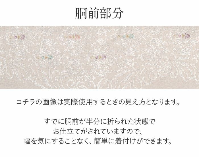 ※実際の商品と同じ色合いに画像修正をしておりますが、環境やモニターの違いにより多少色の違いが出て来ることがあります、ご了承ください。 ※こちらの帯はすでにお仕立てが済んでいる帯です。 ※お仕立ては『名古屋仕立て』となります。