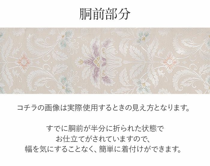 ※実際の商品と同じ色合いに画像修正をしておりますが、環境やモニターの違いにより多少色の違いが出て来ることがあります、ご了承ください。 ※こちらの帯はすでにお仕立てが済んでいる帯です。 ※お仕立ては『名古屋仕立て』となります。