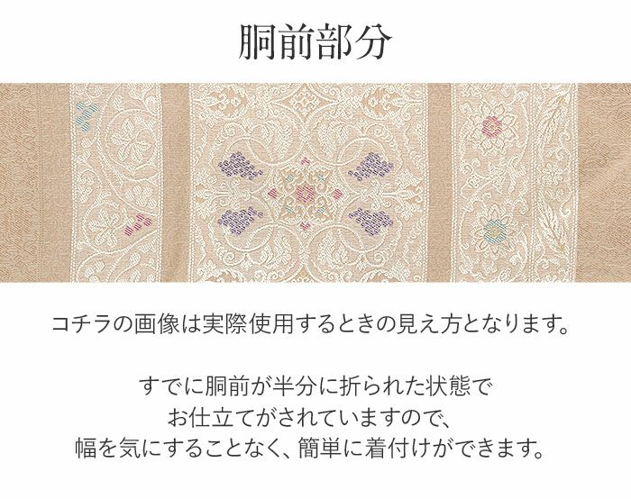 ※実際の商品と同じ色合いに画像修正をしておりますが、環境やモニターの違いにより多少色の違いが出て来ることがあります、ご了承ください。 ※こちらの帯はすでにお仕立てが済んでいる帯です。 ※お仕立ては『名古屋仕立て』となります。