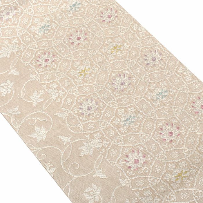 華紋繋ぎ 春、秋、冬といつでもお締めいただける柄です。帯締めや帯揚げとのコーディネートで季節感を出されるのがおすすめです。