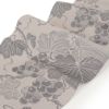 届いてすぐに使える、お仕立て上がりの九寸名古屋帯です。 京都西陣で織り上げられた、西陣証紙のついた確かな品質。 赤みがかったニュアンスグレーの地に葡萄の文様が描かれた、お洒落なデザイン。 ブドウのイメージは秋ですが、例えば食事会でワインを嗜むときなどに着用したり、食に関するときに合わせればとても粋なコーディネートを楽しめるのではないでしょうか。 ワイン色の小物や、ワインに関連する帯留など合わせたら遊び心もあって楽しめそうですね。 帯は伝統工芸の西陣織にて仕立てられており、染められた糸を複雑に織って模様を作るので、完成までに多数の工程があり、とても手間暇がかかる高級絹織物です。 こうして丁寧に織られた生地は、先染めしてから織っているので、一般的な染色法の後染めより丈夫でシワになりにくいのが特徴です。 絹の帯は しなやかな手触りと締め心地の良さを兼ね備え、正絹特有の柔らかな光沢をお楽しみいただけます。 仕立てはお太鼓結びのしやすい名古屋仕立て。胴前がすでに半分に折られた状態ですので、帯結びが苦手な方でも締めやすく、茶道や華道などのお稽古事にも最適な帯です。 西陣織の意匠こもった深みのある柄行きが、後ろ姿のお太鼓も胴前も凛とした着姿を演出してくれるでしょう。 ぜひご自身の着物コーディネートに取り入れていただきたい名古屋帯です。