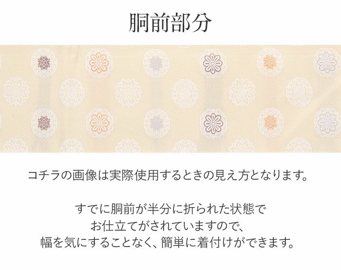※実際の商品と同じ色合いに画像修正をしておりますが、環境やモニターの違いにより多少色の違いが出て来ることがあります、ご了承ください。 ※こちらの帯はすでにお仕立てが済んでいる帯です。 ※お仕立ては『名古屋仕立て』となります。