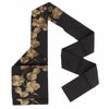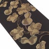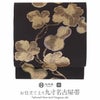 届いてすぐに使える、お仕立て上がりの九寸名古屋帯です。 京都西陣で織り上げられた、西陣証紙のついた確かな品質。 さっくりとした軽い帯地で通気性が良く、盛夏を除く季節にお使いいただけます。 黒地に味わいのある金糸で表された瓢箪文様は、古典的でありながらモダンな雰囲気も持ち合わせています。 上品な帯ですのでコーディネートしやすく様々なシーンに重宝する逸品です。 帯は伝統工芸の西陣織にて仕立てられており、染められた糸を複雑に織って模様を作るので、完成までに多数の工程があり、とても手間暇がかかる高級絹織物です。 こうして丁寧に織られた生地は、先染めしてから織っているので、一般的な染色法の後染めより丈夫でシワになりにくいのが特徴です。 絹素材の帯は、高級感あふれる美しい帯の質感がお楽しみいただけます。 仕立てはお太鼓結びのしやすい名古屋仕立て。胴前がすでに半分に折られた状態ですので、帯結びが苦手な方でも締めやすく、 きもの初心者の方でも気軽に結んで頂けます。 西陣織の意匠こもった深みのある柄行きが、後ろ姿のお太鼓も胴前も凛とした着姿を演出してくれるでしょう。 ぜひご自身の着物コーディネートに取り入れていただきたい名古屋帯です。