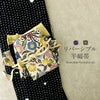 かわいらしく一点ごとに物語性のある召しませ花の半巾帯です。 お洒落な柄が着姿を華やかに彩る、リバーシブル小袋帯は、 裏側をちらりと見せてワンポイントにしてみたり、リボン結びで裏と表両方見せてみたり、 色々な結び方で着物姿を粋に演出することができます。 やや緑かかった薄ベージュ地に色鮮やかな唐花、鳳凰が描かれ、優美で華やかな印象。 裏地は、濃紺地に青の麻の葉模様が浮かび上がる洗練されたデザイン。 絹とポリエステルを合わせて織り合わせており、しなやかな手触りと締め心地の良い逸品です。 丁寧に仕上げられた信頼のある日本製の帯は、仕立て上がりですので、お届け後すぐにお召しいただけます。 小紋や紬などの普段のお着物にあわせてみたり、注目を集めること間違いなしの1本です。 自由な帯結びで個性的なコーディネートがお楽しみいただけます。