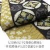 かわいらしく一点ごとに物語性のある召しませ花の半巾帯です。 お洒落な柄が着姿を華やかに彩る、リバーシブル小袋帯は、 裏側をちらりと見せてワンポイントにしてみたり、リボン結びで裏と表両方見せてみたり、 色々な結び方で着物姿を粋に演出することができます。 菊の花と葉で組み合わされた七宝柄が上品で古典柄なデザイン。 裏地は、からし色に白色の草花模様が施された、可愛らしいモダンな印象。 絹とポリエステルを合わせて織り合わせており、しなやかな手触りと締め心地の良い逸品です。 丁寧に仕上げられた信頼のある日本製の帯は、仕立て上がりですので、お届け後すぐにお召しいただけます。 小紋や紬などの普段のお着物にあわせてみたり、注目を集めること間違いなしの1本です。 自由な帯結びで個性的なコーディネートがお楽しみいただけます。