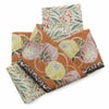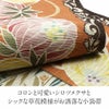 かわいらしく一点ごとに物語性のある召しませ花の半巾帯です。 お洒落な柄が着姿を華やかに彩る、リバーシブル小袋帯は、 裏側をちらりと見せてワンポイントにしてみたり、リボン結びで裏と表両方見せてみたり、 色々な結び方で着物姿を粋に演出することができます。 コロンと大きなシロツメクサが可愛らしく、唐草模様の縁取りがアクセントに。 裏地は、淡緑地に草花模様がが施されたモダンな印象。 絹とポリエステルを合わせて織り合わせており、しなやかな手触りと締め心地の良い逸品です。 丁寧に仕上げられた信頼のある日本製の帯は、仕立て上がりですので、お届け後すぐにお召しいただけます。 小紋や紬などの普段のお着物にあわせてみたり、注目を集めること間違いなしの1本です。 自由な帯結びで個性的なコーディネートがお楽しみいただけます。