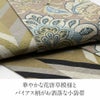 かわいらしく一点ごとに個性がキラリと光る召しませ花の半巾帯です。 お洒落な柄が着姿を華やかに彩る、リバーシブル小袋帯は、 裏側をちらりと見せてワンポイントにしてみたり、リボン結びで裏と表両方見せてみたり、 色々な結び方で着物姿を粋に演出することができます。 表地は、薄茶に花唐草が大胆に描かれた華やかで古典柄なデザイン。 裏地は、グレーに黄緑や白黒のバイアス柄が施されたモダンな印象。 絹とポリエステルを合わせて織り合わせており、しなやかな手触りと締め心地の良い逸品です。 丁寧に仕上げられた信頼のある日本製の帯は、仕立て上がりですので、お届け後すぐにお召しいただけます。 小紋や紬などの普段のお着物にあわせてみたり、注目を集めること間違いなしの1本です。 自由な帯結びで個性的なコーディネートがお楽しみいただけます。