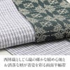 京都西陣の老舗である田中伝機業店謹製のカジュアル半幅帯をご用意致しました。 こちらの半幅帯は表地が西陣織、裏地がしじら織の高級感と実用性を兼ね備えた逸品です。 西陣織にて仕立てられた帯は、絹の上品な光沢が魅力的。 裏地は阿波しじら織の特徴であるシボがあることで肌触りがよく、汗をかいても肌に張りつかない 爽やかな締め心地です。 お洒落な柄が着姿を華やかに彩るリバーシブル小袋帯は、 裏側をちらりと見せてワンポイントにしてみたり、リボン結びで裏と表両方見せてみたり、 色々な結び方で着物姿を粋に演出することができます。 表地は、落ち着いた深緑の生地に結晶のようなモチーフが描かれており、上品でお洒落なデザインです。 裏地は、白地に紺の格子模様が粋な小袋帯。 見る人を楽しませる帯は、魅力的な着姿を演出します。 小紋や紬などのカジュアルな装いをはじめ、浴衣や街着など気軽に締めていただきたい逸品です。