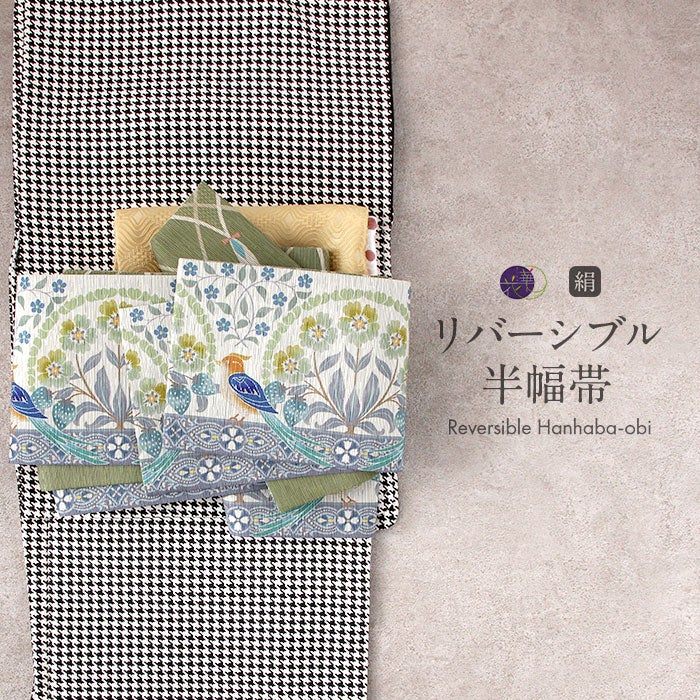 他の画像を見る 【最短日お届け】《召しませ花》小紋などのカジュアルなお着物や夏の着物・単衣に 半幅帯 長尺 緑 帯 リバーシブル 召しませ花 Botanical garden 日本製 当店特別価格 ¥ 44,000 税込 (0) カートに入れる お気に入りに登録する