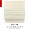届いてすぐに使えるお仕立て上がりの九寸名古屋帯です。 京都西陣で織り上げられた、西陣証紙のついた確かな品質。 上品な帯ですのでコーディネートしやすく、 小紋や紬、色無地、街着などのカジュアル着物に最適です。 帯は伝統工芸の西陣織にて仕立てられており、染められた糸を複雑に織って模様を作るので、完成までに多数の工程があり、とても手間暇がかかる高級絹織物です。 こうして丁寧に織られた生地は、先染めしてから織っているので、一般的な染色法の後染めより丈夫でシワになりにくいのが特徴です。 絹の帯は光の当たり方で絹特有の柔らかな光沢が反射し、高級感あふれる美しい帯の質感がお楽しみいただけます。 しなやかな手触りと締め心地の良さを兼ね備え、正絹特有の柔らかな光沢をもつ逸品です。 仕立てはお太鼓結びのしやすい名古屋仕立てなので、帯結びが苦手な方でも締めやすく、お茶席やお稽古事にも最適な商品です。