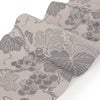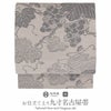 届いてすぐに使える、お仕立て上がりの九寸名古屋帯です。 京都西陣で織り上げられた、西陣証紙のついた確かな品質。 赤みがかったニュアンスグレーの地に葡萄の文様が描かれた、お洒落なデザイン。 ブドウのイメージは秋ですが、例えば食事会でワインを嗜むときなどに着用したり、食に関するときに合わせればとても粋なコーディネートを楽しめるのではないでしょうか。 ワイン色の小物や、ワインに関連する帯留など合わせたら遊び心もあって楽しめそうですね。 帯は伝統工芸の西陣織にて仕立てられており、染められた糸を複雑に織って模様を作るので、完成までに多数の工程があり、とても手間暇がかかる高級絹織物です。 こうして丁寧に織られた生地は、先染めしてから織っているので、一般的な染色法の後染めより丈夫でシワになりにくいのが特徴です。 絹の帯は しなやかな手触りと締め心地の良さを兼ね備え、正絹特有の柔らかな光沢をお楽しみいただけます。 仕立てはお太鼓結びのしやすい名古屋仕立て。胴前がすでに半分に折られた状態ですので、帯結びが苦手な方でも締めやすく、茶道や華道などのお稽古事にも最適な帯です。 西陣織の意匠こもった深みのある柄行きが、後ろ姿のお太鼓も胴前も凛とした着姿を演出してくれるでしょう。 ぜひご自身の着物コーディネートに取り入れていただきたい名古屋帯です。