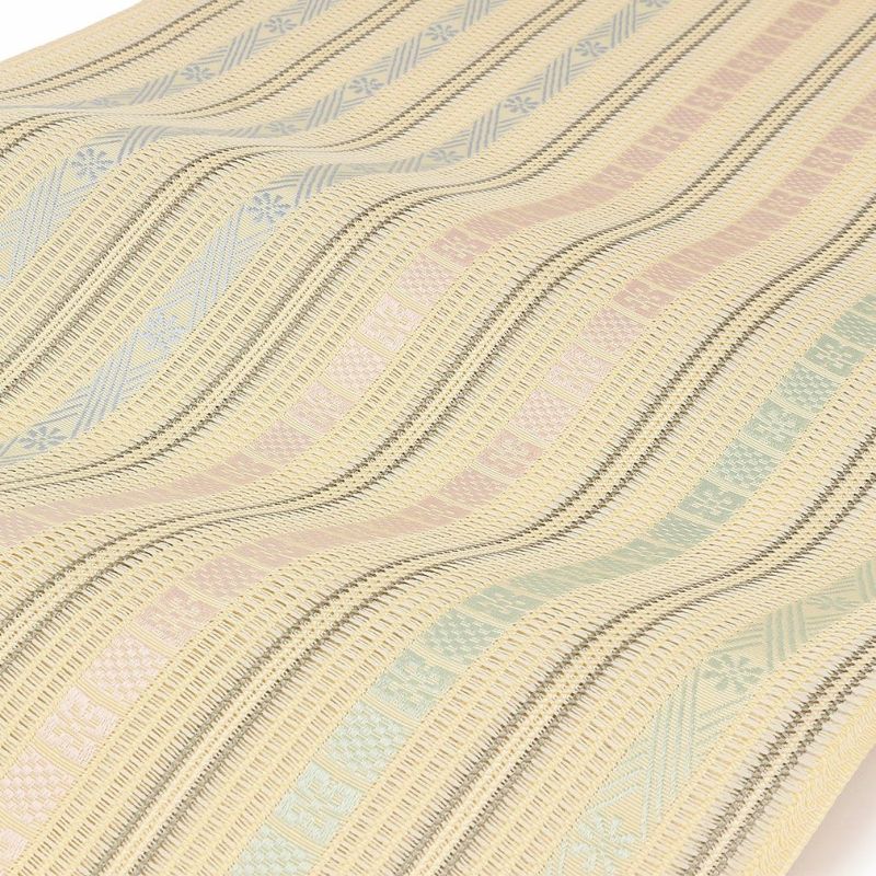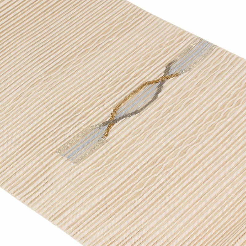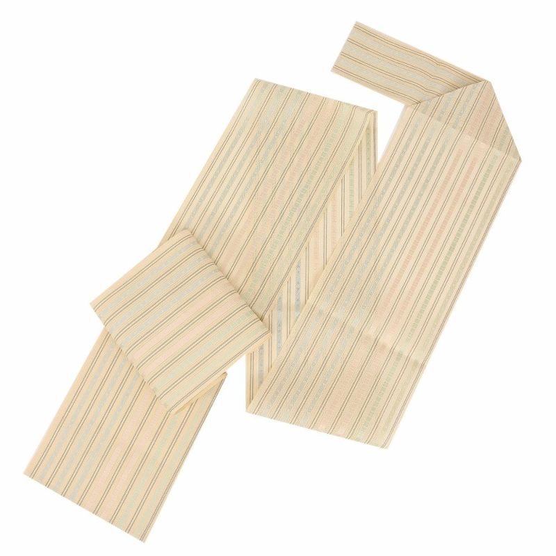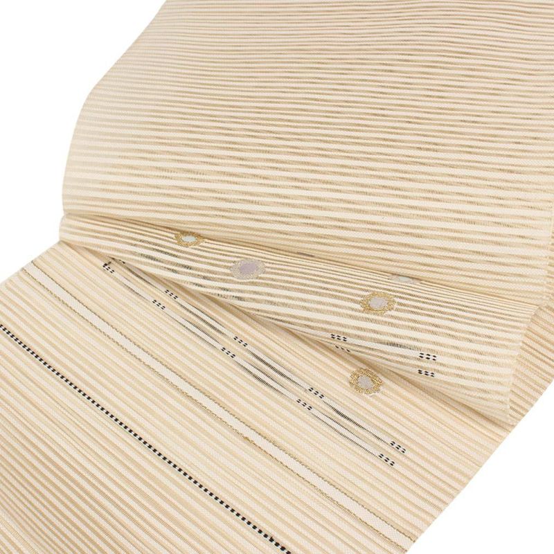 他の画像を見る 年中通して普段着や茶道 華道などのお稽古のお着物に 名古屋帯 博多帯 博多織 帯 八寸 ベージュ 縞 唐花 間道 協和織工場 正絹 仕立て上がり 当店特別価格 ¥ 44,000 税込 在庫切れ (0) 再入荷お知らせ お気に入りに登録する