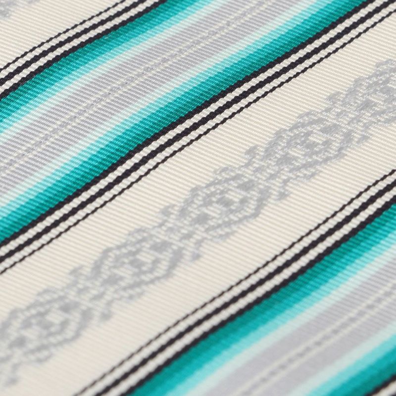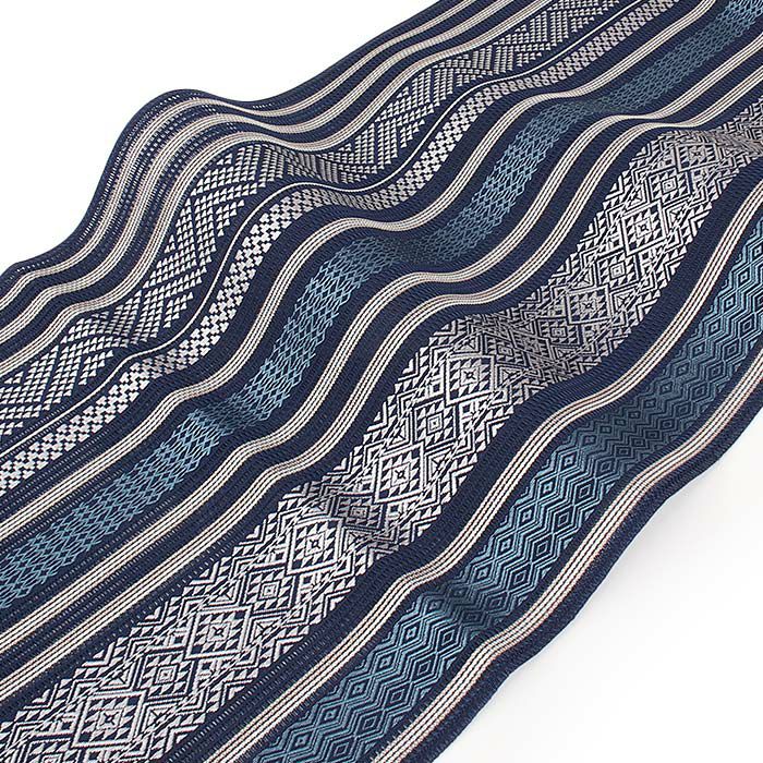 他の画像を見る 年中通して普段着や茶道 華道などのお稽古のお着物に 名古屋帯 博多帯 博多織 帯 八寸 オフホワイト 青 縞 菱 アラベスク菱 協和織工場 正絹 仕立て上がり 当店特別価格 ¥ 44,000 税込 在庫切れ (0) 再入荷お知らせ お気に入りに登録する