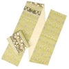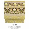 洋風モダンなデザインの「うれしづくし」シリーズの京袋帯です。 落ち着いた黄色の帯地に、ウィリアム・モリスの代表作の一つである「いちご泥棒」が美しく描かれたモダンで華やかなデザイン。 シンプルな着物も一気にイメージチェンジしてくれ、和にもモダンにも活躍します。 正絹なので手触りもよく、柔らかくて締めやすいので使い勝手も良いと、ご好評いただいています。 絹の艶やかな光沢が美しく光り、ポリエステルでは出ない高級感も感じさせてくれます。 こちらの京袋帯はすでにお仕立てが済んでいるので、届いたらすぐに使えるのも魅力の一つ。 全通柄の帯は、お太鼓の柄出しが苦手な方にも安心して締めていただけます。 ちょっと個性的なコーデを探している人に是非お勧めしたい商品です。