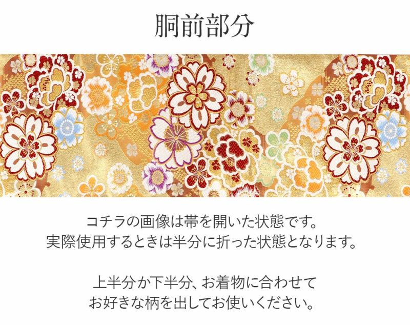 他の画像を見る 《お仕立て上り・送料込》【最短日お届け】振袖などのフォーマルなお着物に 袋帯 振袖用 帯 成人式 ゴールド 八重桜 梅 西陣織 大光織物 仕立て上がり 振袖帯 結婚式 成人式 振袖 正装 フォーマル おび obi 和装 当店特別価格 ¥ 27,500 税込 (0) カートに入れる お気に入りに登録する
