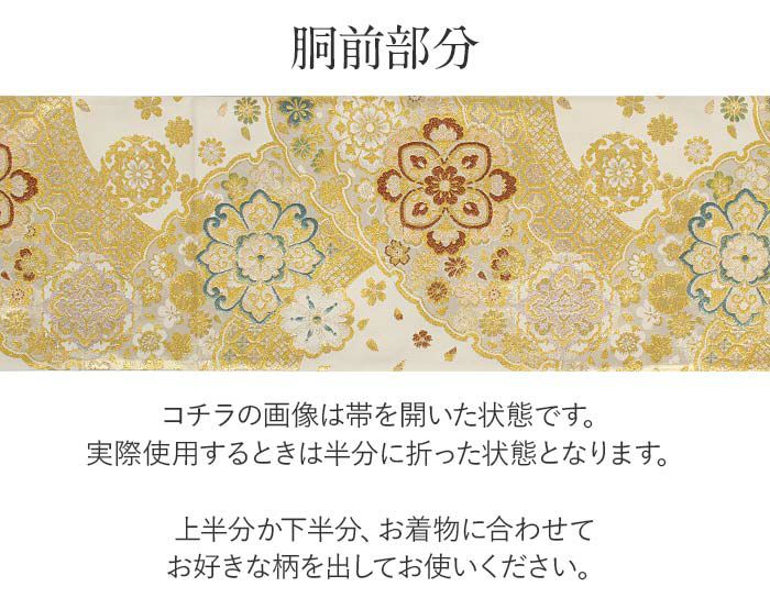 他の画像を見る 《お仕立て上り・送料込》【最短日お届け】振袖などのフォーマルなお着物に 振袖 帯 袋帯 成人式 ゴールド アイボリー 八重桜 熨斗 西陣織 酒井守織物 仕立て上がり 新品 金 白 帯単品 当店特別価格 ¥ 22,000 税込 (0) カートに入れる お気に入りに登録する