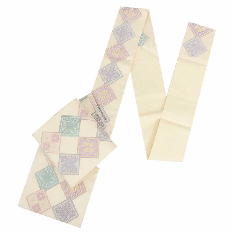 他の画像を見る 《お仕立て上り・送料込》【最短日お届け】小紋・紬・色無地などのお着物に 名古屋帯 帯 九寸 < クリーム / 花七宝に花菱 > 西陣織 < 丸勇織元 > 仕立て上がり 当店特別価格 ¥ 28,160 税込 (0) カートに入れる お気に入りに登録する
