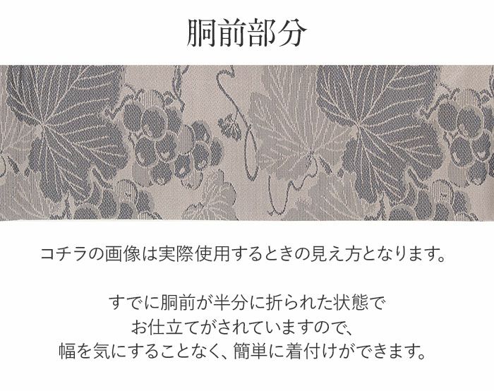 他の画像を見る ≪在庫限り≫ 西陣織 長尺で色々な結び方が楽しめる半幅帯 半幅帯 正絹 帯 半巾帯 普段用 濃グレー 青 紫 生成り 花更紗 葡萄 リバーシブル 西陣織 大光織物 カジュアル 長尺 日本製 当店特別価格 ¥ 26,400 税込 (0) カートに入れる お気に入りに登録する