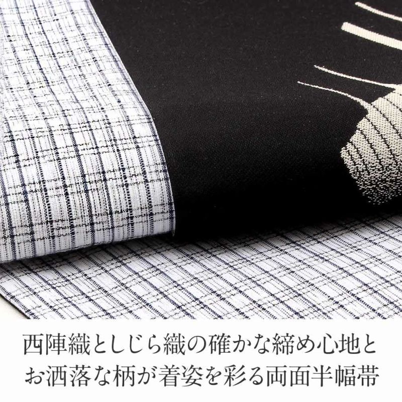 他の画像を見る 【最短日お届け】《西陣×阿波しじら》小紋などのカジュアルなお着物や夏の着物・単衣に 半幅帯 帯 リバーシブル 正絹 阿波しじら < 黒 /お城> 西陣織 田中伝機業店 日本製 当店特別価格 ¥ 22,000 税込 (0) カートに入れる お気に入りに登録する