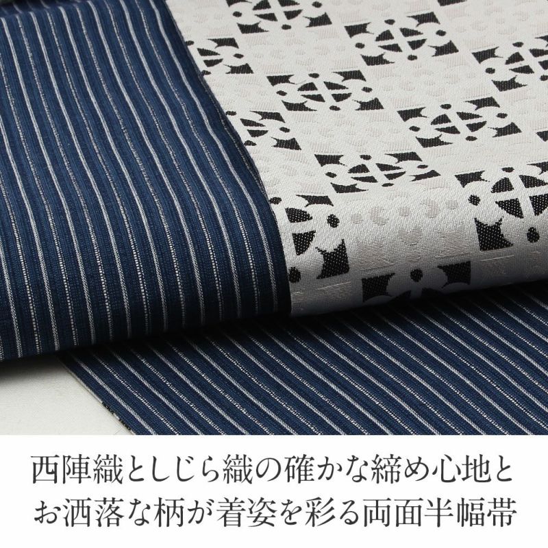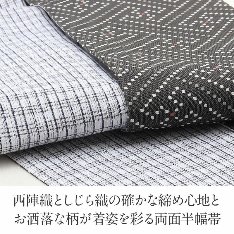 他の画像を見る 【最短日お届け】《西陣×阿波しじら》小紋などのカジュアルなお着物や夏の着物・単衣に 半幅帯 正絹 リバーシブル 西陣織 阿波しじら織 帯 蜘蛛の巣 格子 田中伝機 日本製 当店特別価格 ¥ 22,000 税込 (0) カートに入れる お気に入りに登録する