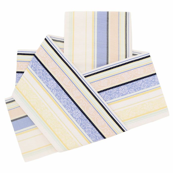 他の画像を見る 【最短日お届け】《博多帯》締めやすく帯崩れしにくい カジュアルなお着物に 博多織 半幅帯 絹 帯 白 青 黄 薄橙 縞 唐花 小野織物 日本製 本場筑前 半巾帯 小袋帯 当店特別価格 ¥ 11,000 税込 (0) カートに入れる お気に入りに登録する
