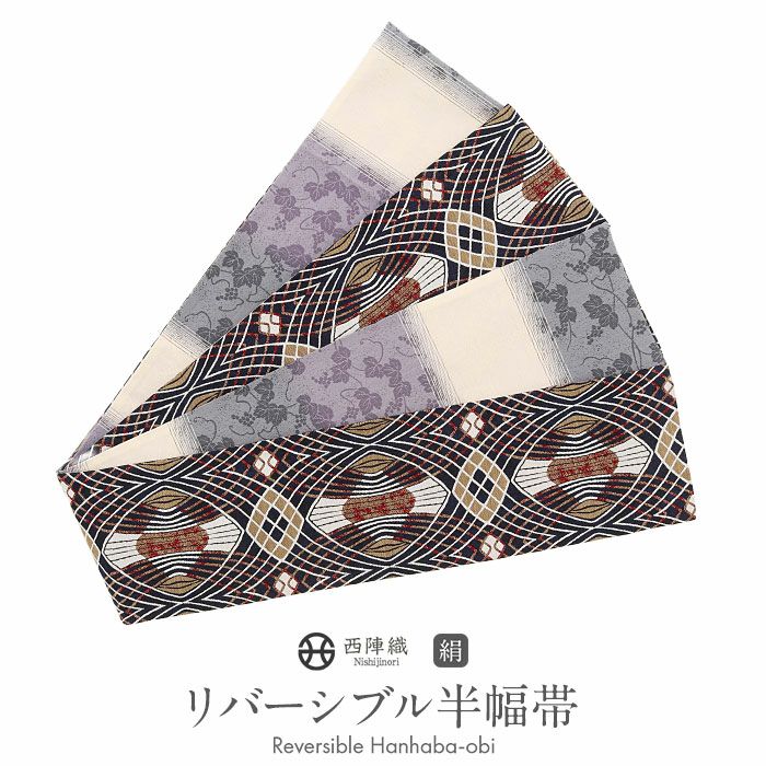 他の画像を見る ≪在庫限り≫ 西陣織 長尺で色々な結び方が楽しめる半幅帯 半幅帯 正絹 帯 半巾帯 普段用 濃紺 紫 生成り グレー 幾何学 縞 葡萄 リバーシブル 西陣織 大光織物 カジュアル 長尺 日本製 当店特別価格 ¥ 26,400 税込 (0) カートに入れる お気に入りに登録する