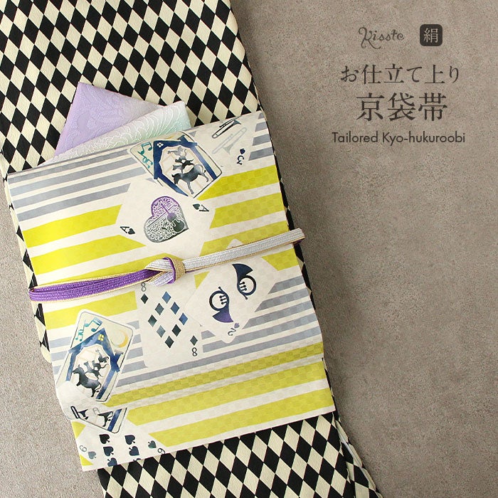 他の画像を見る 【最短日お届け】小紋・紬・色無地などカジュアルな着物に 京袋帯 <灰×黄/ボーダー トランプ> 正絹 仕立て上がり イエロー グレー 白 日本製 当店特別価格 ¥ 41,800 税込 (0) お気に入りに登録する