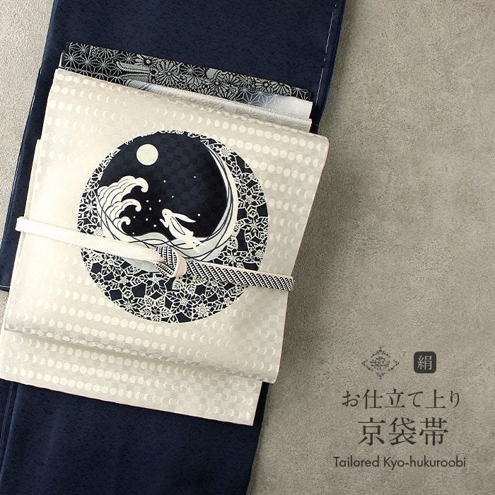 他の画像を見る 【最短日お届け】小紋・紬・色無地などカジュアルな着物に 京袋帯 <ライトグレー/月うさぎ> 正絹 仕立て上がり 灰 濃紺 日本製 当店特別価格 ¥ 52,800 税込 (0) お気に入りに登録する
