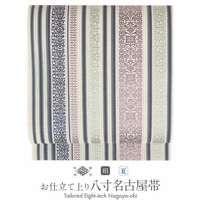 他の画像を見る 《お仕立て上り・送料込》【最短日お届け】夏の小紋 紋紗 色無地 御召 などのお着物に 名古屋帯 夏 博多帯 博多織 夏名古屋帯 夏帯 帯 八寸 白 薄紫 薄緑 洋唐草 間道 黒木織物 羅 正絹 仕立て上がり 当店特別価格 ¥ 74,800 税込 (0) カートに入れる お気に入りに登録する
