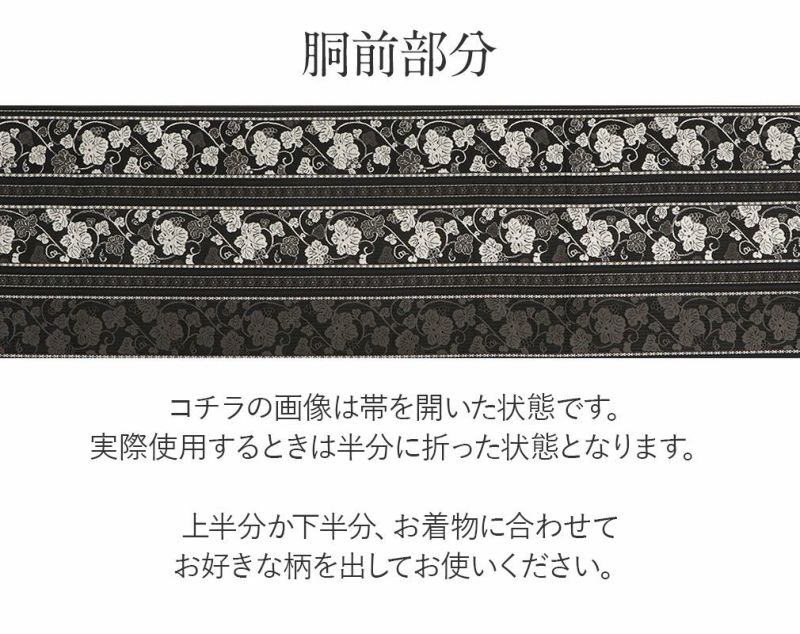 他の画像を見る 【最短日お届け】《博多帯》締めやすく帯崩れしにくい カジュアルなお着物に 博多織 半幅帯 帯 小袋帯 黒 洋唐草 花柄 長尺 当店特別価格 ¥ 52,800 税込 (0) カートに入れる お気に入りに登録する