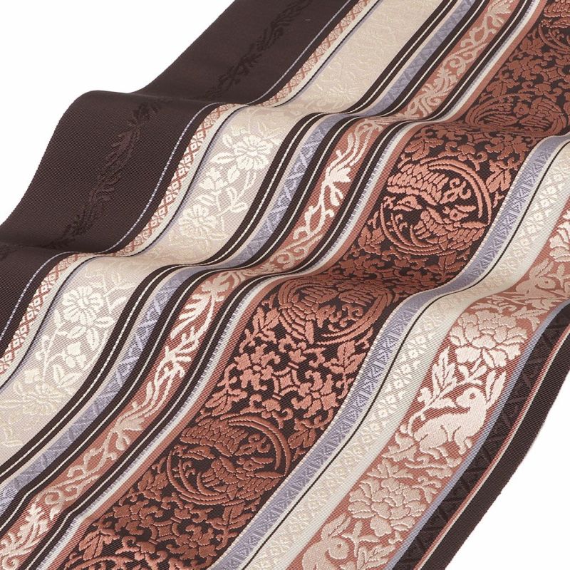 他の画像を見る 【最短日お届け】《博多帯》締めやすく帯崩れしにくい カジュアルなお着物に 博多織 半幅帯 帯 紋織り 博多帯 小袋帯 茶色 ストライプ リーフ 花柄 長尺 当店特別価格 ¥ 52,800 税込 (0) カートに入れる お気に入りに登録する
