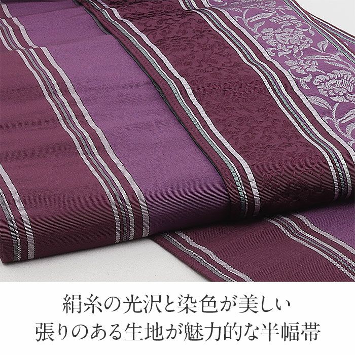 他の画像を見る 【最短日お届け】《博多帯》締めやすく帯崩れしにくい カジュアルなお着物に 博多織 半幅帯 絹 帯 紫 赤紫 唐花 小野織物 日本製 本場筑前 半巾帯 小袋帯 当店特別価格 ¥ 11,000 税込 (0) カートに入れる お気に入りに登録する