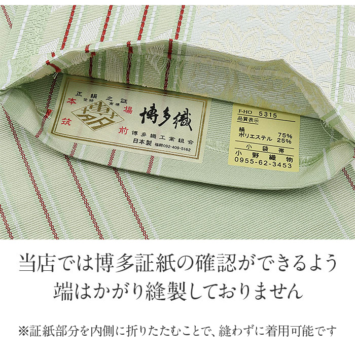 他の画像を見る 【最短日お届け】《博多帯》締めやすく帯崩れしにくい カジュアルなお着物に 博多織 半幅帯 絹 帯 薄緑 縞 唐花 小野織物 日本製 本場筑前 半巾帯 小袋帯 当店特別価格 ¥ 11,000 税込 (0) お気に入りに登録する
