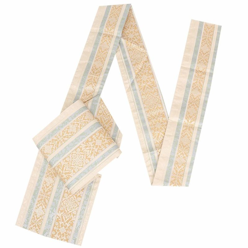 ●実際の商品と同じ色合いに画像修正をしておりますが、環境やモニターの違いにより多少色の違いが出て来ることがあります、ご了承ください。 ●生地の取り方により柄の出方が異なる場合がございます。 ●こちらの帯はすでにお仕立てが済んでいる帯です。 ●お仕立ては『名古屋仕立て』となります。