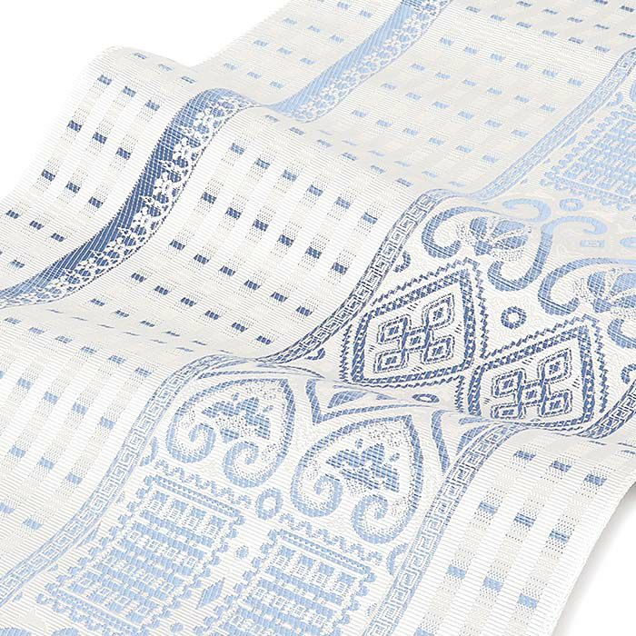 他の画像を見る 年中通して普段着や茶道 華道などのお稽古のお着物に 名古屋帯 博多帯 博多織 帯 八寸 オフホワイト 青 縞 菱 アラベスク菱 協和織工場 正絹 仕立て上がり 当店特別価格 ¥ 44,000 税込 在庫切れ (0) 再入荷お知らせ お気に入りに登録する