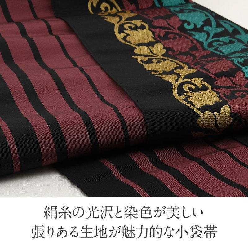 他の画像を見る 小紋 紬 色無地 御召 などのお着物に 名古屋帯 博多帯 博多織 帯 八寸 黒 蔓花 縞 協和織工場 正絹 仕立て上がり 当店特別価格 ¥ 49,500 税込 在庫切れ (0) 再入荷お知らせ お気に入りに登録する