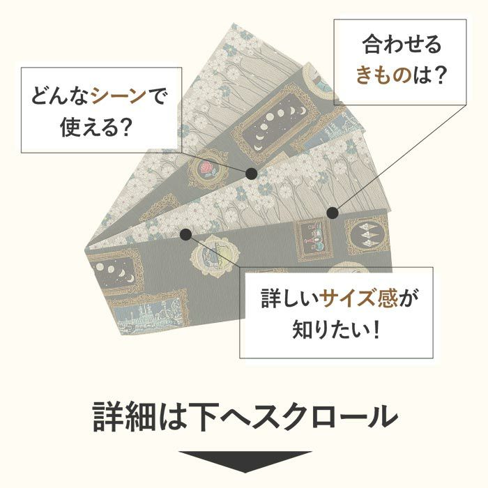 他の画像を見る 【最短日お届け】≪キステオリジナル≫小紋・紬・街着などのカジュアルなお着物に 半幅帯 綿 帯 リバーシブル 長尺 グレー 白 森の中のアリス 日本製 当店特別価格 ¥ 33,000 税込 カートに入れる お気に入りに登録する