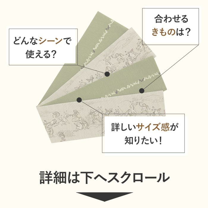他の画像を見る 【最短日お届け】《召しませ花》小紋などのカジュアルなお着物や夏の着物・単衣に 半幅帯 帯 半巾帯 普段用 グレージュ 緑 鳥獣戯画 ひょうたん リバーシブル 召しませ花 カジュアル 絹 長尺 日本製 当店特別価格 ¥ 44,000 税込 カートに入れる お気に入りに登録する