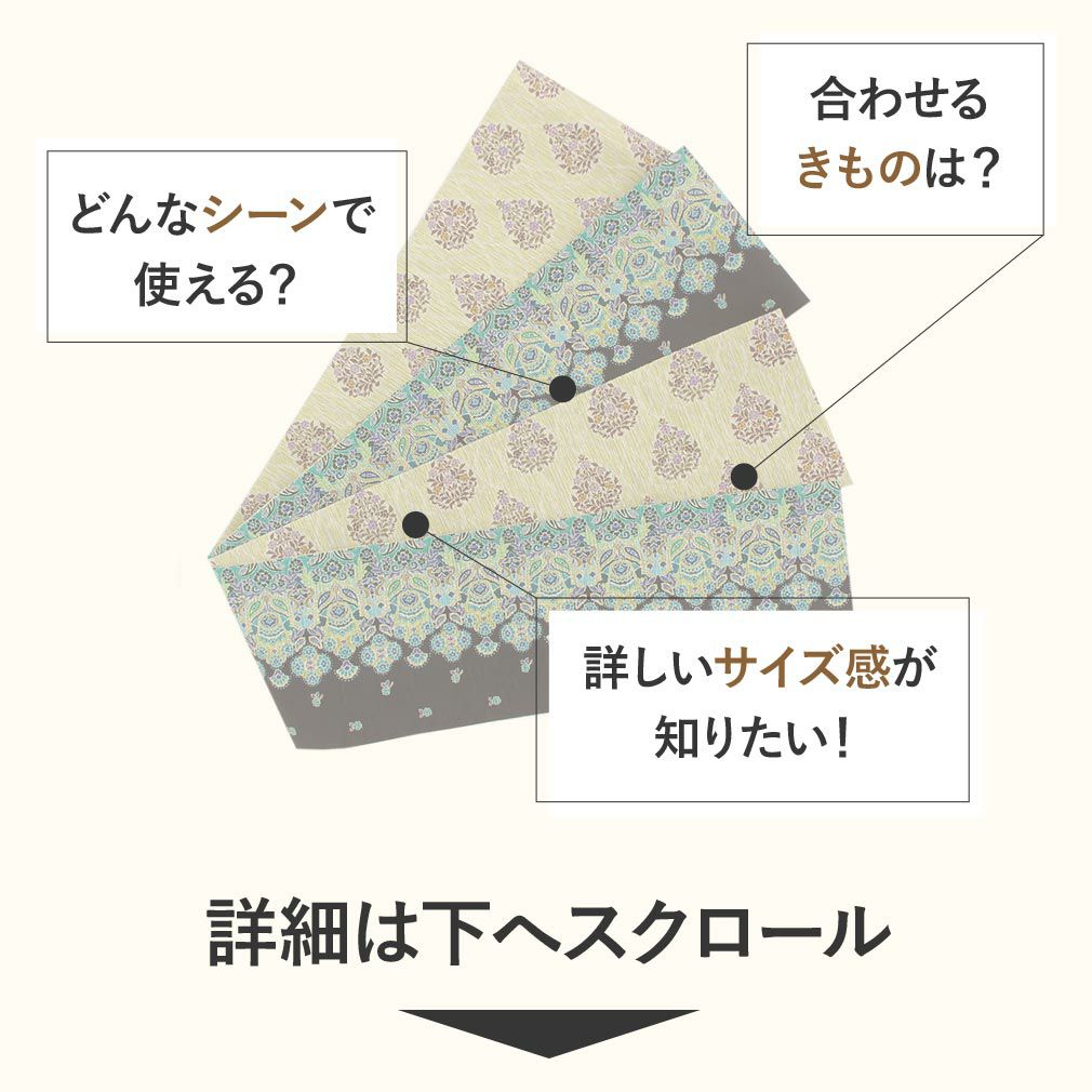 他の画像を見る ≪在庫限り≫ 西陣織 長尺で色々な結び方が楽しめる半幅帯 半幅帯 正絹 帯 半巾帯 普段用 濃グレー 薄茶 紫 緑 水色 生成り 花更紗 吉祥文様 リバーシブル 西陣織 大光織物 カジュアル 長尺 日本製 当店特別価格 ¥ 26,400 税込 カートに入れる お気に入りに登録する
