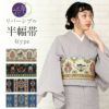 かわいらしく一点ごとに物語性のある召しませ花の半巾帯です。 お洒落な柄が着姿を華やかに彩る、リバーシブル小袋帯は、 裏側をちらりと見せてワンポイントにしてみたり、リボン結びで裏と表両方見せてみたり、 色々な結び方で着物姿を粋に演出することができます。 TEPE Aは、色鮮やかな植物と動物たちがかわいいデザイン。シカやリスを狙うオオカミやキツネが描かれた、物語風な柄行きが楽しめます。 裏面はそれぞれの垂れ先に赤ずきんちゃんとオオカミ。結び方次第で、柄の出方が楽しめます。 TYPE Bは、唐花草をモチーフにしたオリエンタルな雰囲気が魅力的な柄行き。 裏面は、合わせやすい色合いで蔦草が描かれた、シンプルで使いやすいデザイン。 どちらも表面と裏面で違ったテイストが楽しめる、魅力的な柄使いの帯です。 絹とポリエステルを合わせて織り合わせており、しなやかな手触りと締め心地の良い逸品です。 丁寧に仕上げられた信頼のある日本製の帯は、仕立て上がりですので、お届け後すぐにお召しいただけます。 小紋や紬などの普段のお着物にあわせてみたり、注目を集めること間違いなしの1本です。 自由な帯結びで個性的なコーディネートがお楽しみいただけます。