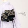 半幅帯 帯 本場筑前博多織 小袋帯 リバーシブル 正絹 深緑 黒 ネコ ダマスク Kissteオリジナル 協和織工場 日本製