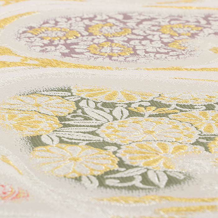 他の画像を見る 《お仕立て上り・送料込》【最短日お届け】黒留袖や色留袖、訪問着などのフォーマルなお着物に。 袋帯 帯 留袖 訪問着 <アイボリー/雪輪に宝尽くし> 西陣織 秋草吉祥唐織 絹の花 <大光織物> 仕立て上がり 当店特別価格 ¥ 55,000 税込 カートに入れる お気に入りに登録する