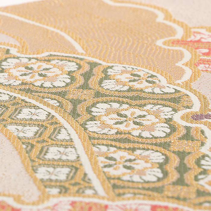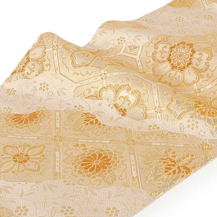 他の画像を見る 《お仕立て上り・送料込》【最短日お届け】黒留袖や色留袖、訪問着などのフォーマルなお着物に 袋帯 帯 留袖 訪問着 <ベージュ、ゴールド/菱に草花> 絹 <西陣・大光> 仕立て上がり 当店特別価格 ¥ 52,800 税込 カートに入れる お気に入りに登録する