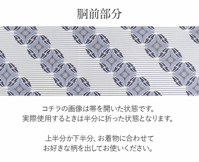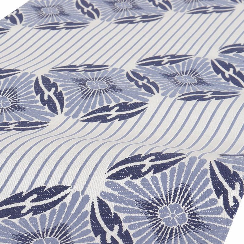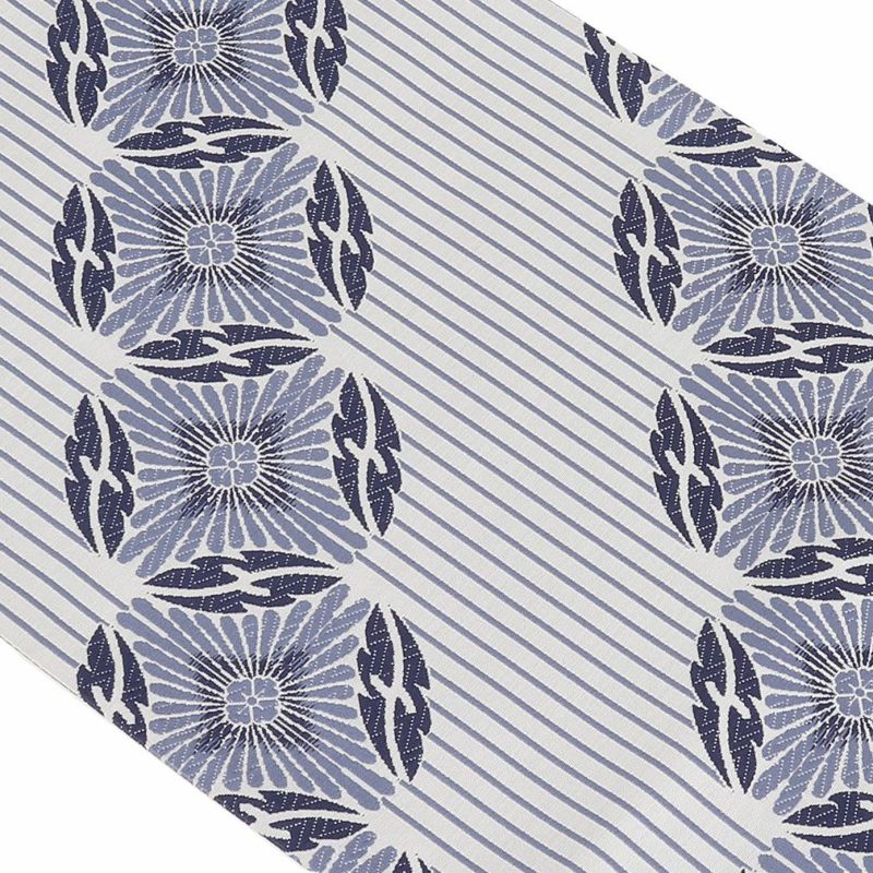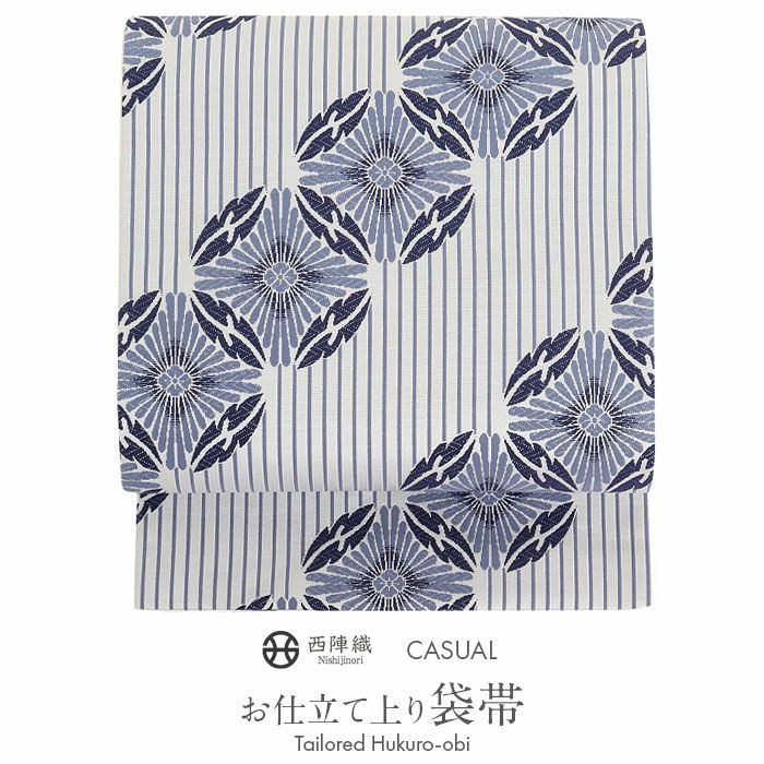 付け下げ 小紋 お茶席用などのお着物にお使い頂ける、西陣織お仕立て上り袋帯です。 帯は伝統工芸の西陣織にて仕立てられており、染められた糸を複雑に織って模様を作るので、完成までに多数の工程があり、とても手間暇がかかる高級絹織物です。 こうして丁寧に織られた生地は、先染めしてから織っているので、一般的な染色法の後染めより丈夫でシワになりにくいのが特徴です。 絹の帯は、魅入ってしまうほどの美しい輝きが魅力的。 光の当たり方で、絹特有の柔らかな光沢が反射し、高級感あふれる美しい帯がお楽しみいただけます。 絹の質感と光沢、上品で絶佳なデザインが、華やかに演出してくれるでしょう。 小紋や紬、色無地、街着などのカジュアル着物に最適で、手軽に楽しめるお洒落用帯です。 帯結びが苦手な方でも締めやすく、お茶席やお稽古事にも最適な商品です。