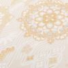 優しい色合いのシャンパンベージュの帯地に、煌めく金銀糸で華紋・吉祥文様などが繊細に織り込まれており、上品で華やかな印象を与えます。